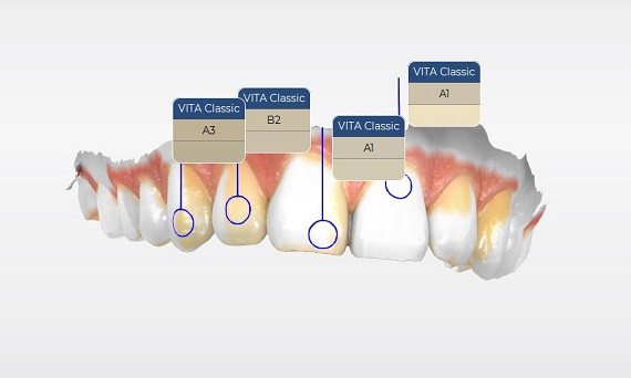 Esta tecnología cuenta con la función de detección de tonos, haciendo posible analizar el tono de cada diente de acuerdo con su escaneo, contando así con información objetiva y seguridad a la hora de seleccionar el tono de restauración.